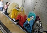 Акция актеров театра "Грим масса", посвященная Всемирному дню уфолога, прошла в Камергерском переулке. Участники акции на эскалаторе.