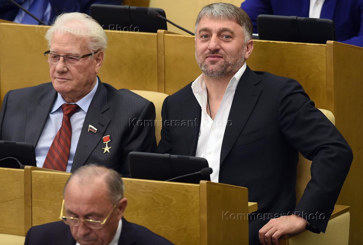 Член комитета Государственной думы России по промышленности Адам Делимханов (справа) на пленарном заседании Госдумы.