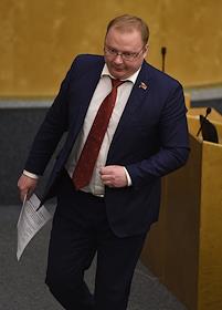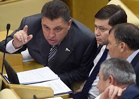 Член комитета Государственной думы России по федеративному устройству и вопросам местного самоуправления Вячеслав Тимченко (слева) на пленарном заседании Госдумы.