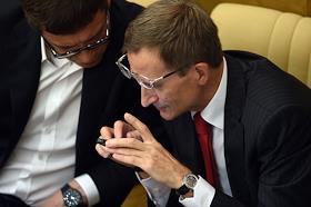 Заместитель министра финансов России Сергей Сторчак (справа) на пленарном заседании Государственной думы России.