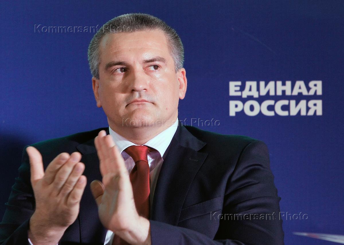 Конференция крымского регионального отделения партии "Единая Россия" прошла в Симферополе. Исполняющий обязанности главы Республики Крым Сергей Аксенов перед выдвижением кандидатов на выборы в Госсовет.
