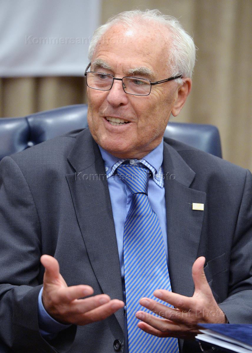 Президент Европейской Федерации фехтования Ено Камути (Венгрия) во время пресс-конференции в отеле The Ritz-Carlton Moscow.