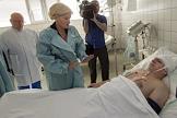 Заместитель председателя правительства России Ольга Голодец во время посещения пострадавших в результате аварии в Московском метрополитене в институте скорой помощи им. Н.В. Склифосовского. В тоннеле между станциями "Славянский бульвар" и "Парк Победы" Арбатско-Покровской линии московского метро сошли с рельсов три вагона поезда.