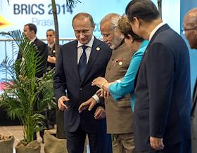 VI саммит БРИКС. Cлева направо: президент России Владимир Путин, премьер-министр Индии Нарендра Моди, президент Бразилии Дилма Роуссефф, председатель Китайской Народной Республики Си Цзиньпин во время встречи в Конгресс-центре.