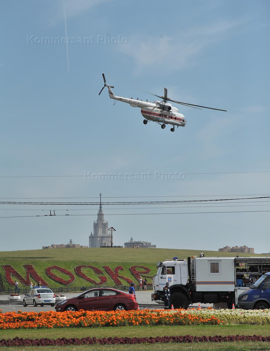 В тоннеле между станциями "Славянский бульвар" и "Парк Победы" Арбатско-Покровской линии московского метро сошли с рельсов три вагона поезда. Вертолет МЧС России на месте происшествия.