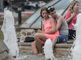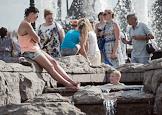 Жара в Москве. Отдыхающие у фонтана в Александровском саду.