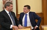 Первый заместитель председателя комитета Государственной думы России по вопросам собственности Валерий Селезнев (справа) перед началом заседания правительства России.