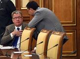 Министр по делам Крыма Олег Савельев (слева) и заместитель министра иностранных дел России Григорий Карасин (справа) на заседании правительства России.