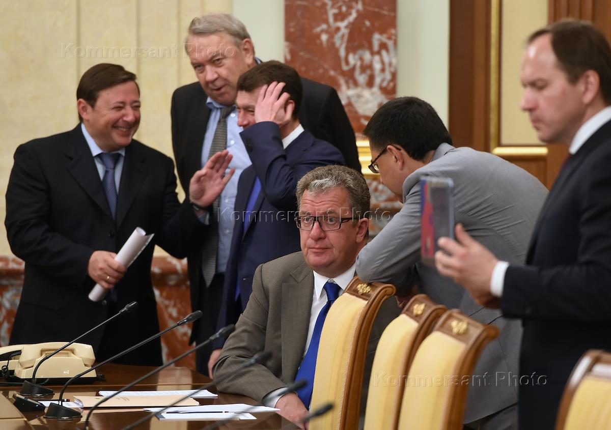 Заседание правительства России. Слева направо: министр энергетики России Александр Новак, министр России по делам Северного Кавказа Лев Кузнецов и министр строительства и жилищно-коммунального хозяйства России Михаил Мень перед началом заседания.