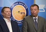 Руководитель Администрации президента России, почетный президент баскетбольной Единой Лиги ВТБ Сергей Иванов (слева) и президент баскетбольной Единой лиги ВТБ Сергей Кущенко (справа) на заседании совета Единой Лиги ВТБ по баскетболу в отеле "Риц Карлтон".