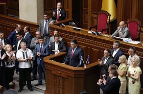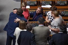 Представители Фракции "Удар" в Верховной Раде Украины (ВРУ) на заседании ВРУ.