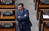 Депутат Верховной Рады Украины (ВРУ) от фракции БЮТ Сергей Соболев (на трибуне) и народные депутаты от фракции БЮТ на заседании ВРУ.