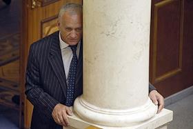 Заседание Верховной Рады Украины. Народный депутат Верховной рады Украины (ВРУ) от фракции Партии Регионов Вадим Новинский и депутат ВРУ от фракции Коммунистической партии Украины Адам Мартынюк (слева обнимаются) и представители фракции Коммунистической партии Украины на заседании ВРУ.
