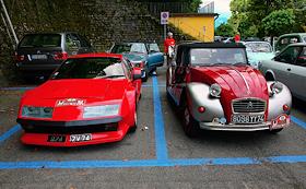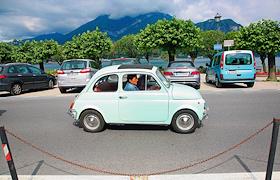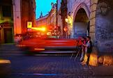 Виды Праги. Надпись "Психопат" на боковом зеркале автомобиля.