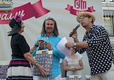 Авторалли ГУМ Gorkyclassic 2014. Актриса Светлана Светличная (слева) и певец Валерий Сюткин (справа) во время церемонии награждения участников автопробега ретро-автомобилей, приуроченного к 121-летию ГУМа.
