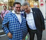 Авторалли ГУМ Gorkyclassic 2014. Управляющий директор ОАО "Торговый Дом ГУМ" Теймураз Гугуберидзе (слева) и председатель наблюдательного совета компании Bosco di Ciliegi Михаил Куснирович (справа) перед началом церемонии награждения победителей ралли.