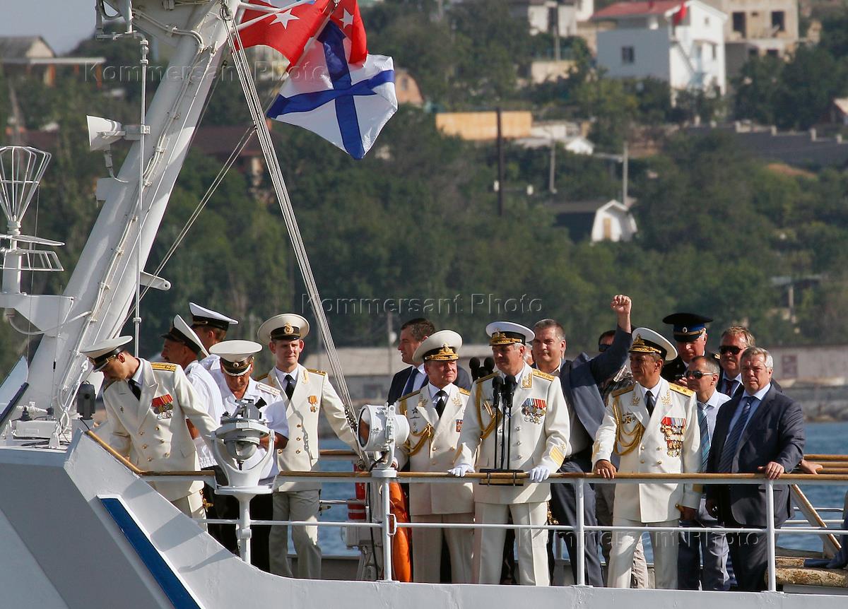 Председатель совета министров Республики Крым Сергей Аксенов (в центре) на Праздновании Дня Военно-морского флота России в Севастополе.
