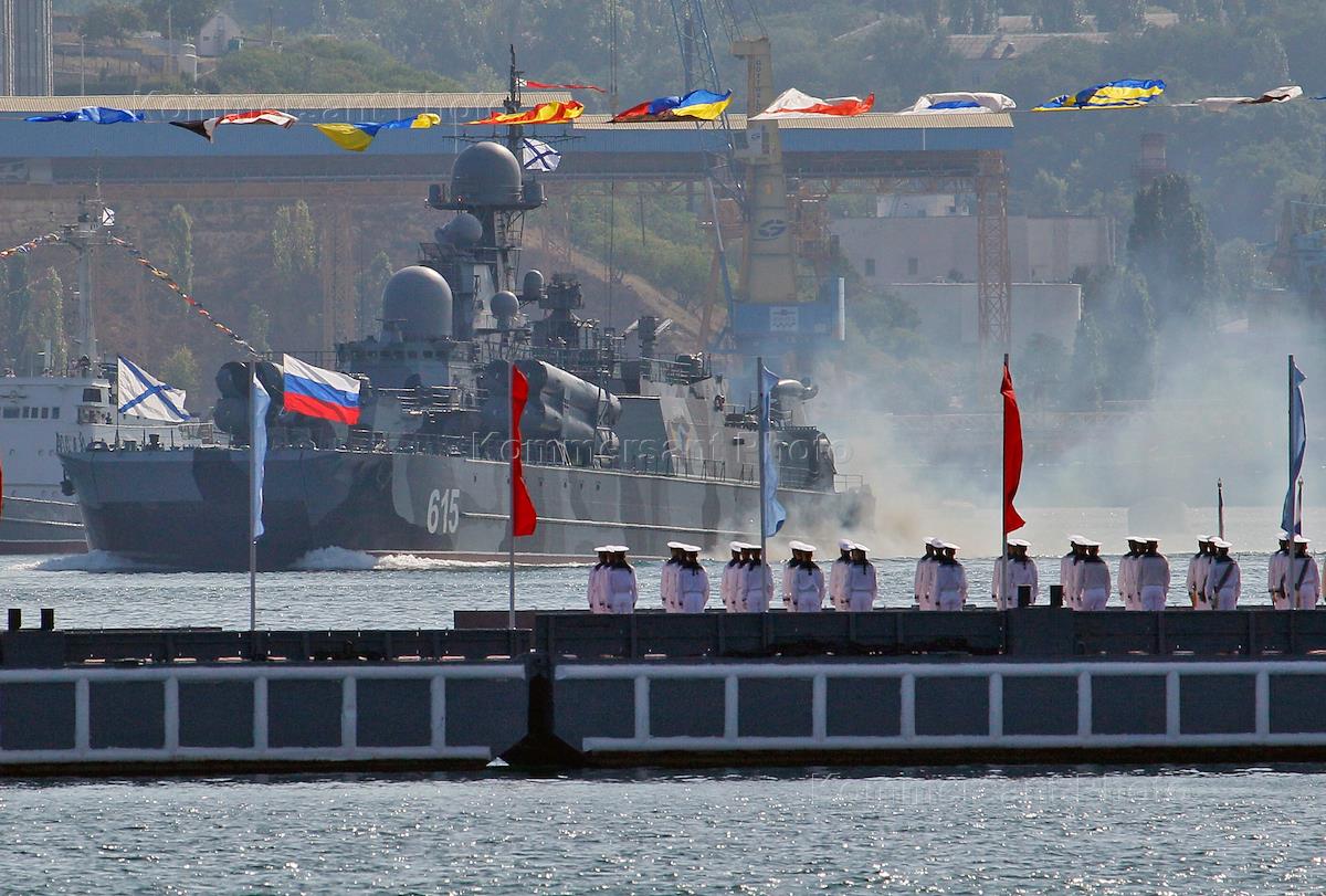 Празднованичные мероприятия Дня Военно-морского флота (ВМФ) России прошли с Севастополе. Корабль с бортовым номером 962 во время выполнения стрельбы с палубных орудий.