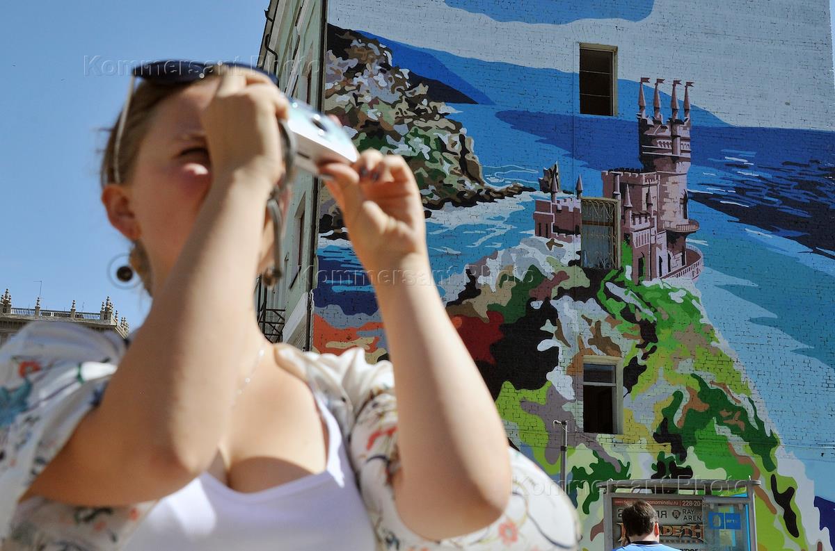 Виды Москвы. Улица Покровка. Граффити на тему Крыма на жилых домах.