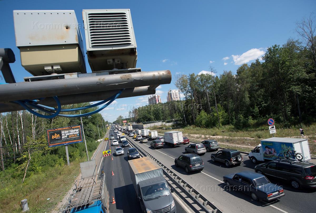 Жанровая фотография. Камера наблюдения скоростного автомобильного режима движения на дороге.