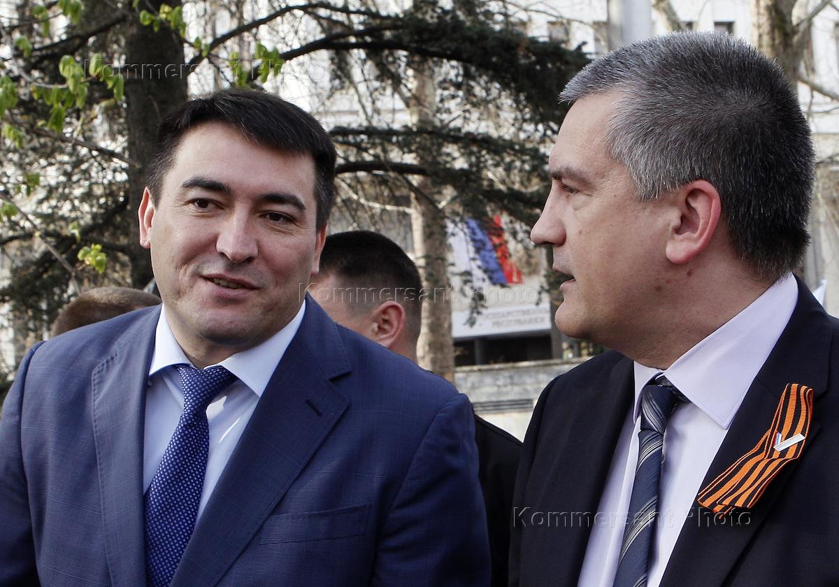 Председатель совета министров Республики Крым Сергей Аксенов (справа) и его первый заместитель Рустам Темиргалиев (слева) во время внеочередного заседания Государственного совета Республики Крым. 29 июля Рустам Темриргалиев освобожден от должности внештатного советника Сергея Аксенова.