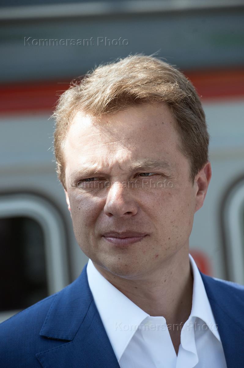 Руководитель департамента транспорта и развития дорожно-транспортной инфраструктуры города Москвы Максим Лискутов во время осмотра нового поезда Центральной пригородной компании на Савеловском вокзале.