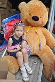 Согласованный митинг, организованный общественным движением "Битва за Донбасс", в поддержку Новороссии прошел на пересечении улицы Дурова и Олимпийского проспекта. Девочка сидит рядом с игрушкой большим плюшевым мишкой.