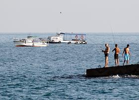 Жанровая фотография. Рыбаки во время ловли рыбы с пирса.