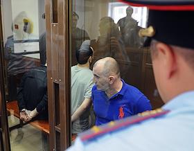 Обвиняемые по делу в причастности к убийству грузинского генерала Романа Думбадзе Александр Беришвили (слева) и Торнике Квирикашвили (справа) во время оглашения приговора в Мосгорсуде.
