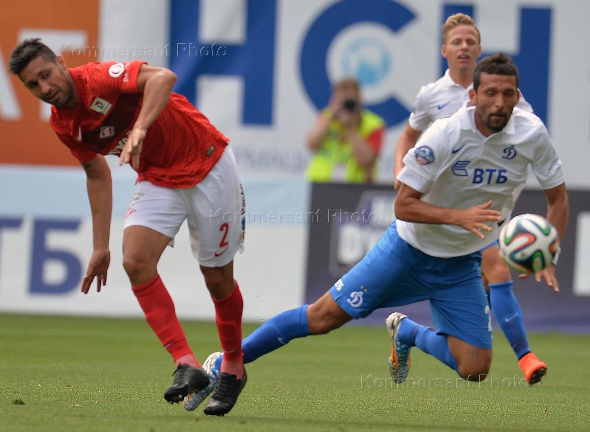 СОГАЗ-Чемпионат России по футболу 2014/15. 2-й тур. Матч между командами "Динамо" (Москва) - "Спартак" (Москва). Футболисты Сергей Паршивлюк (слева) и Вильям Ванкёр (справа) во время фатча.