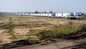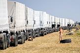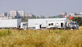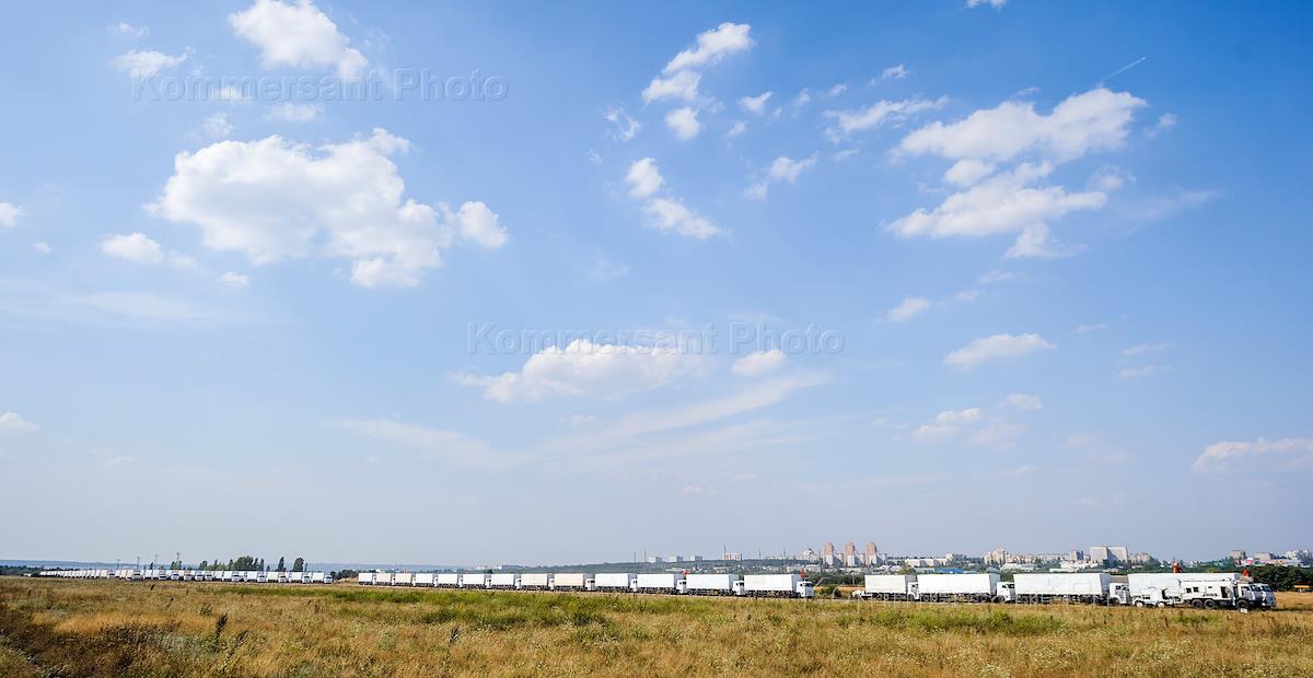 Конвой с гуманитарным грузом для жителей юго-восточной Украины на аэропорте "Балтиморе" под Воронежем.