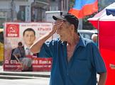 Выборы в местные советы одновременно с выборами в Госсовет Крыма пройдут 14 сентября 2014 года. Предвыборная агитация Коммунистической партии России (КПРФ) на улицах города.