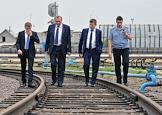 Начальник ГУП "Московский метрополитен" Дмитрий Пегов (второй слева) во время посещения электродепо "Печатники".