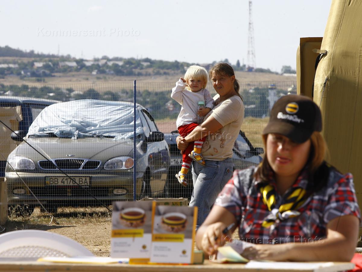 Беженцы с юго-востока Украины в палаточном лагере между Донецком и Каменск-Шахтинским.