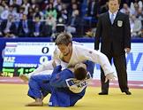 Чемпионат мира по дзюдо-2014 в Челябинске. Личные соревнования спортсменов в категории до 73 кг. Матч за третье место между Ертуганом Тореновым (Казахстан) (сверху) и Мусой Могушковым (Россия)(снизу).