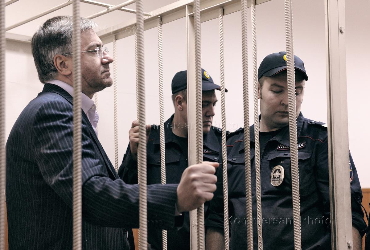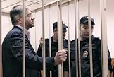 Заместитель руководителя Федерального агентства России по туризму, подозреваемый по делу о хищении денежных средств у Межпромбанка, Дмитрий Амунц (слева) во время заседания Басманного районного суда.