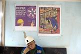 Российская государственная горнорудная компания"АЛРОСА". Шахтер в бытовке подземного рудника "Мир".