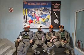 Российская государственная горнорудная компания"АЛРОСА". Шахтеры в бытовке подземного рудника по добыче алмазоносной руды "Мир".