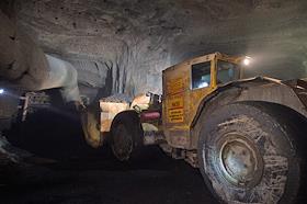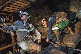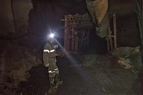 Российская государственная горнорудная компания"АЛРОСА". Работа шахтеров в шахте подземного рудника по добыче алмазоносной руды "Мир".