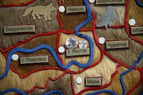 Карта Республики Саха (Якутии) на оленьей шкуре.