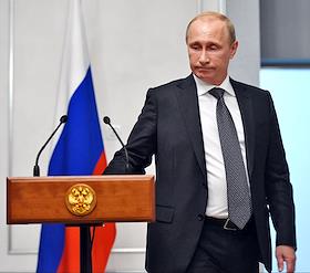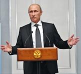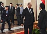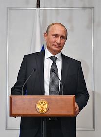 Рабочая поездка президента России Владимира Путина в Монголию. Президент России Владимир Путин после церемонии подписания совместных документов по итогам Российско-монгольских переговоров в Государственном дворце.