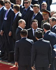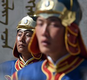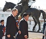 Рабочая поездка президента России Владимира Путина в Монголию. Церемония официальной встречи президента России Владимира Путина и президента Монголии Цахиагийна Элбэгдоржа.