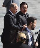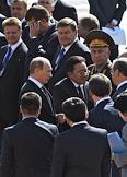 Рабочая поездка президента России Владимира Путина в Монголию. Президент России Владимир Путин (слева) и президент Монголии Цахиагийн Элбэгдорж (в центре) во время церемонии официальной встречи на площади Чингисхана в Улан-Баторе.