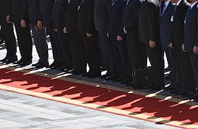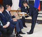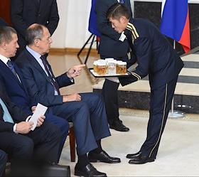 Рабочая поездка президента России Владимира Путина в Монголию. Министр иностранных дел России Сергей Лавров во время официальной встречи президента России Владимира Путина и президента Монголии Цахиагийна Элбэгдоржа.