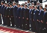Рабочая поездка президента России Владимира Путина в Монголию. Президент России Владимир Путин (в центре) и президент Монголии Цахиагийн Элбэгдорж (в центре справа) во время церемонии официальной встречи на площади Чингисхана в Улан-Баторе.