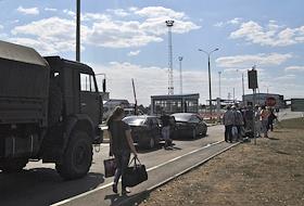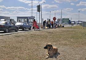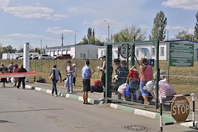 Беженцы с Украины на контрольно-пропускном пункте "Донецк".