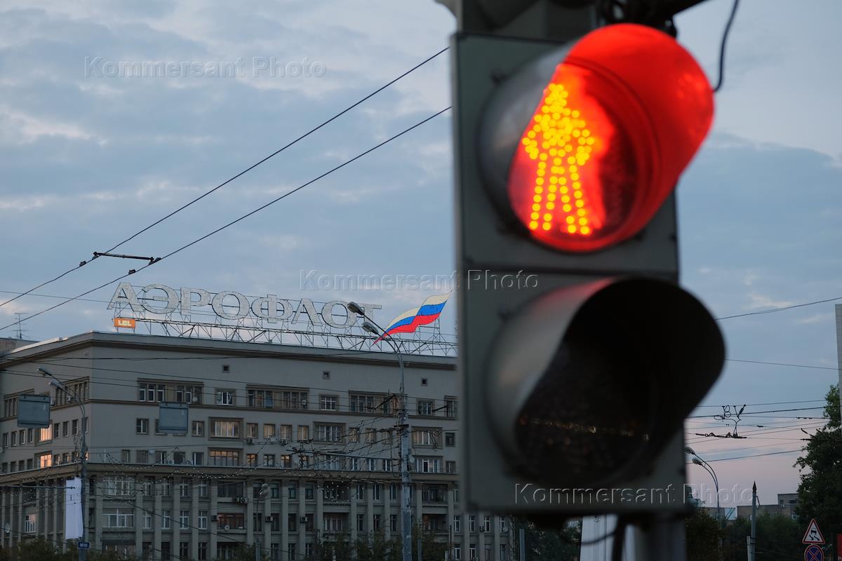 Виды Москвы. Ленинградский проспект. Реклама авиакомпании "Аэрофлот" на крыше здания.