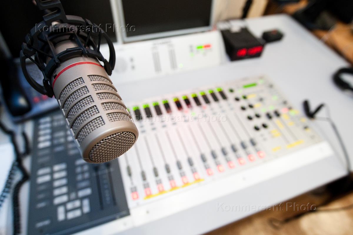 Студия радиостанции Rock FM (95,2 FM). Пульт управления и микрофон ведущего.