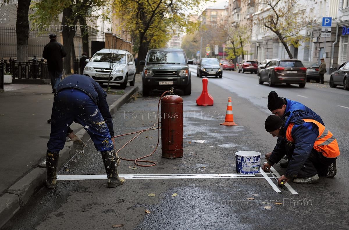 Жанровая фотография. Разлиновка парковочной части дороги.