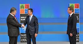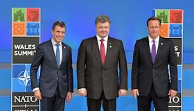 Слева направо: президент Украины Петр Порошенко, генеральный секретарь НАТО Андерс Фог Расмуссен, премьер-министр Великобритании Дэвид Кэмерон во время саммита Североатлантического альянса (НАТО) в Уэльсе.